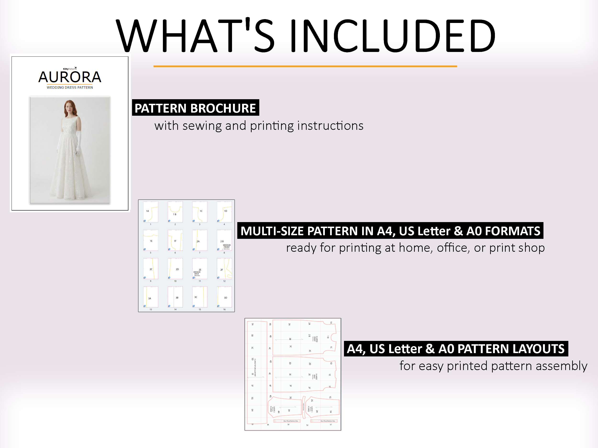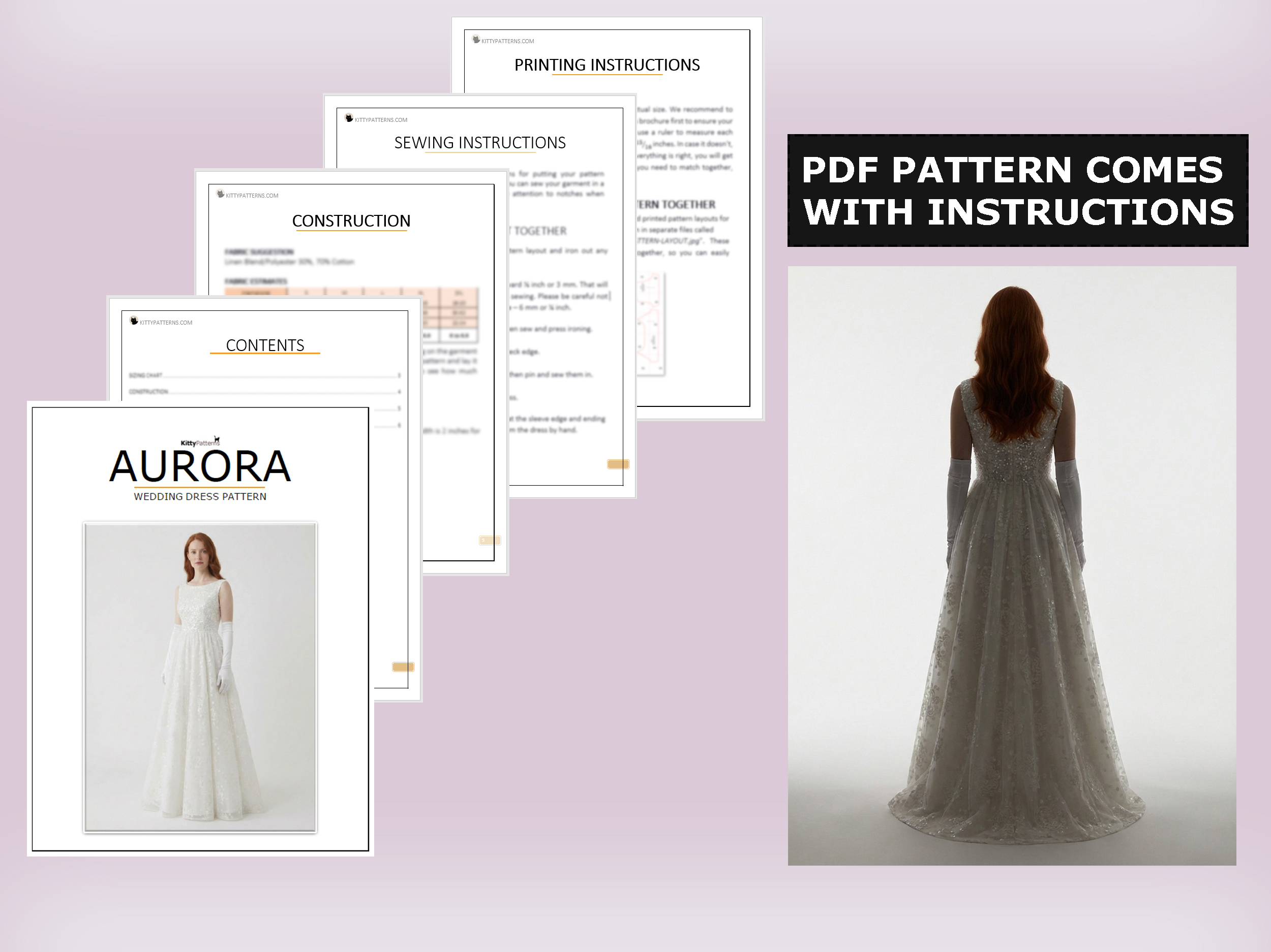 Dive into the magic of our AURORA wedding dress sewing pattern – easy to download and print at home, the office, or your local print shop.